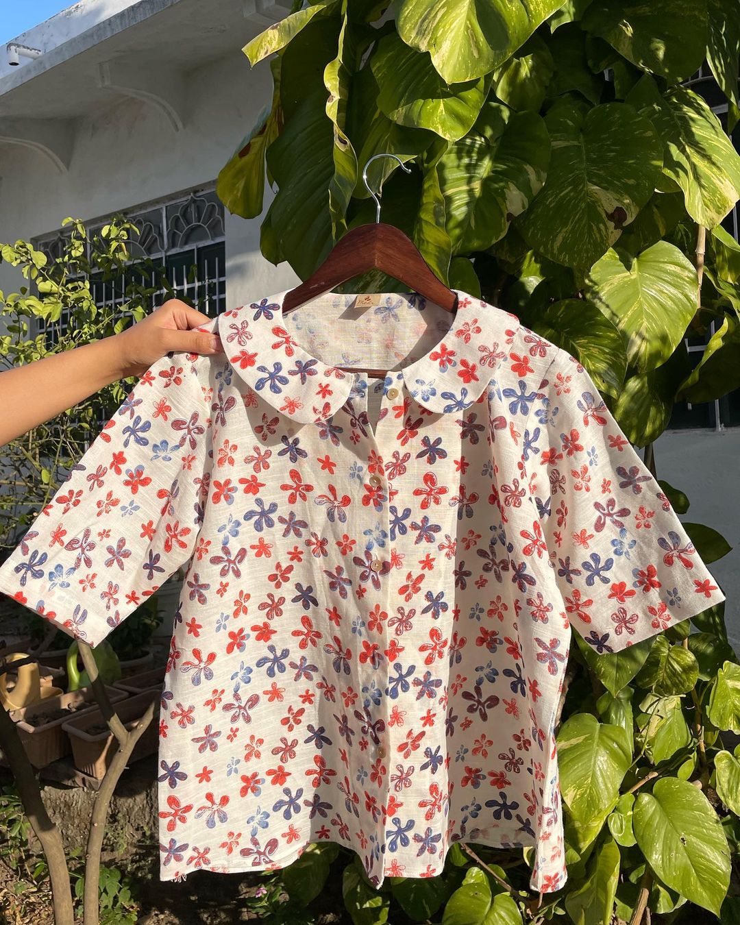 Style this azure top for a fun day out with friends. pair it with a fitted jeans in a complementary color. This combination will create a balanced silhouette and highlight the top's charming appeal.