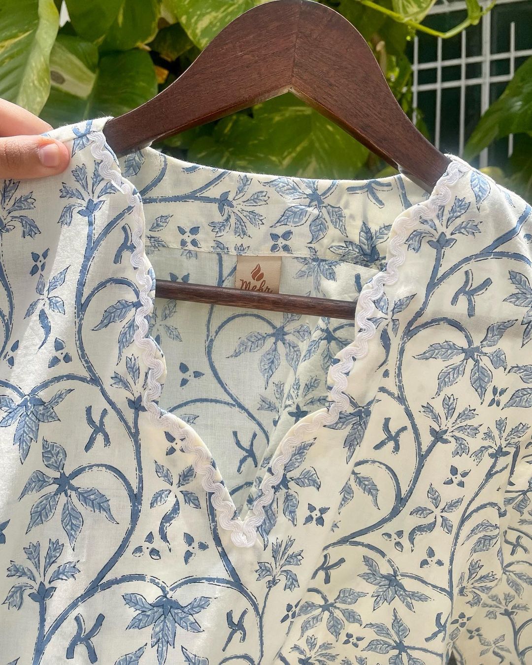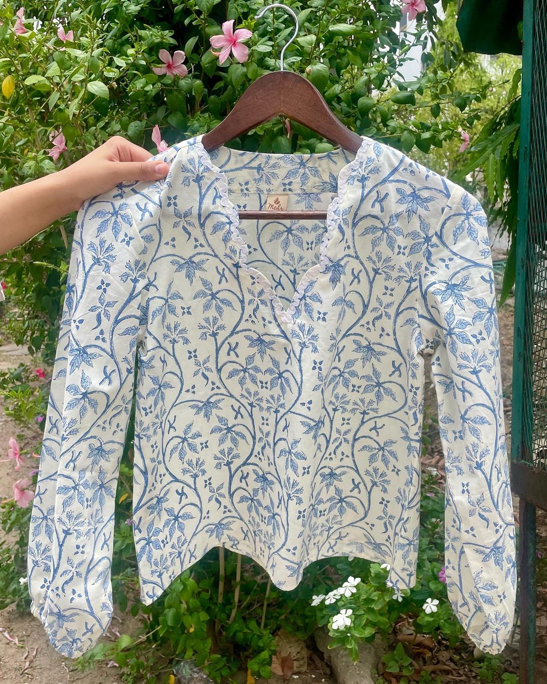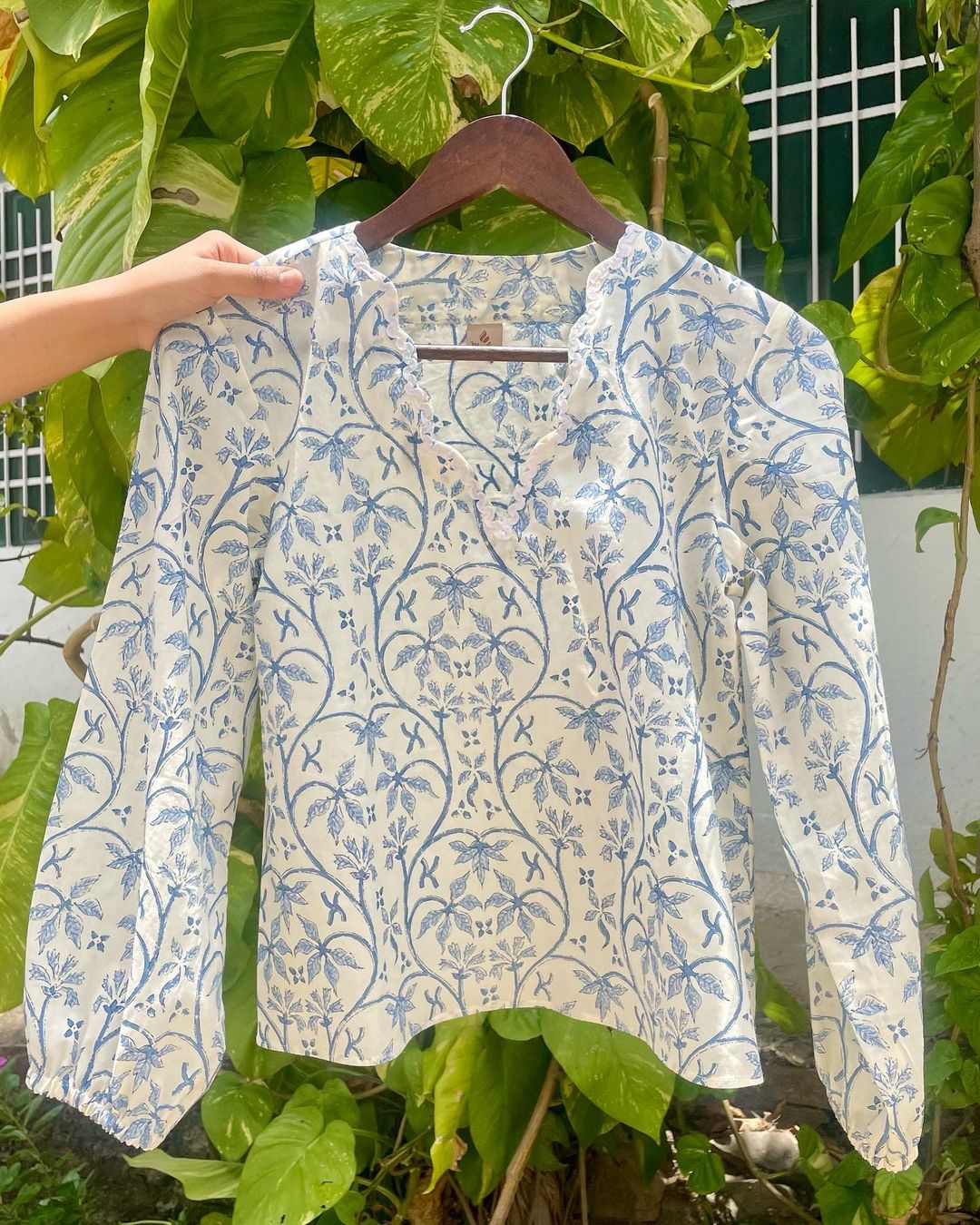 Its a custom made top for our client Aeyndree . It has a beautiful semi circle neckline adorned with white lace.