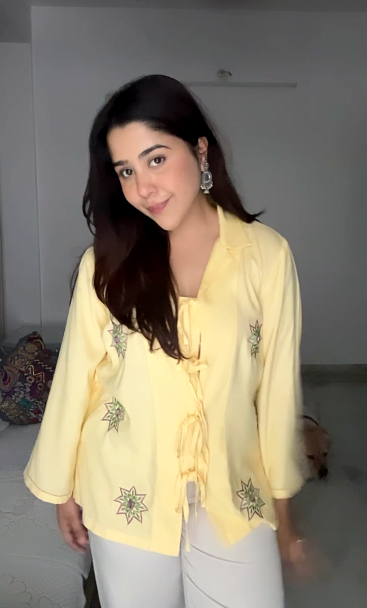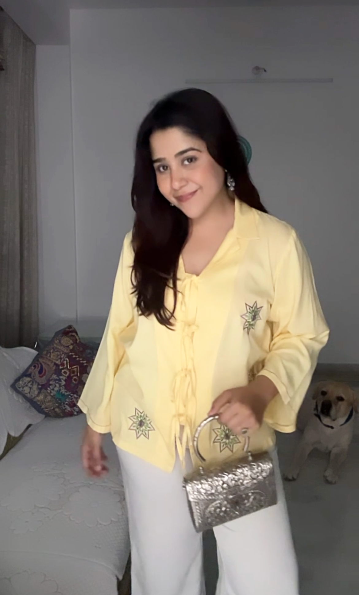 Elevate your festive wardrobe with the Glow Shirt, a stylish and comfortable top perfect for Diwali parties, office celebrations, and evening gatherings. Made with high-quality fabric and delicate shimmer detailing, this women’s party top pairs effortlessly with jeans, skirts, or trousers for a chic, modern look. Shop the Glow Shirt online at Mehr and shine bright this festive season!