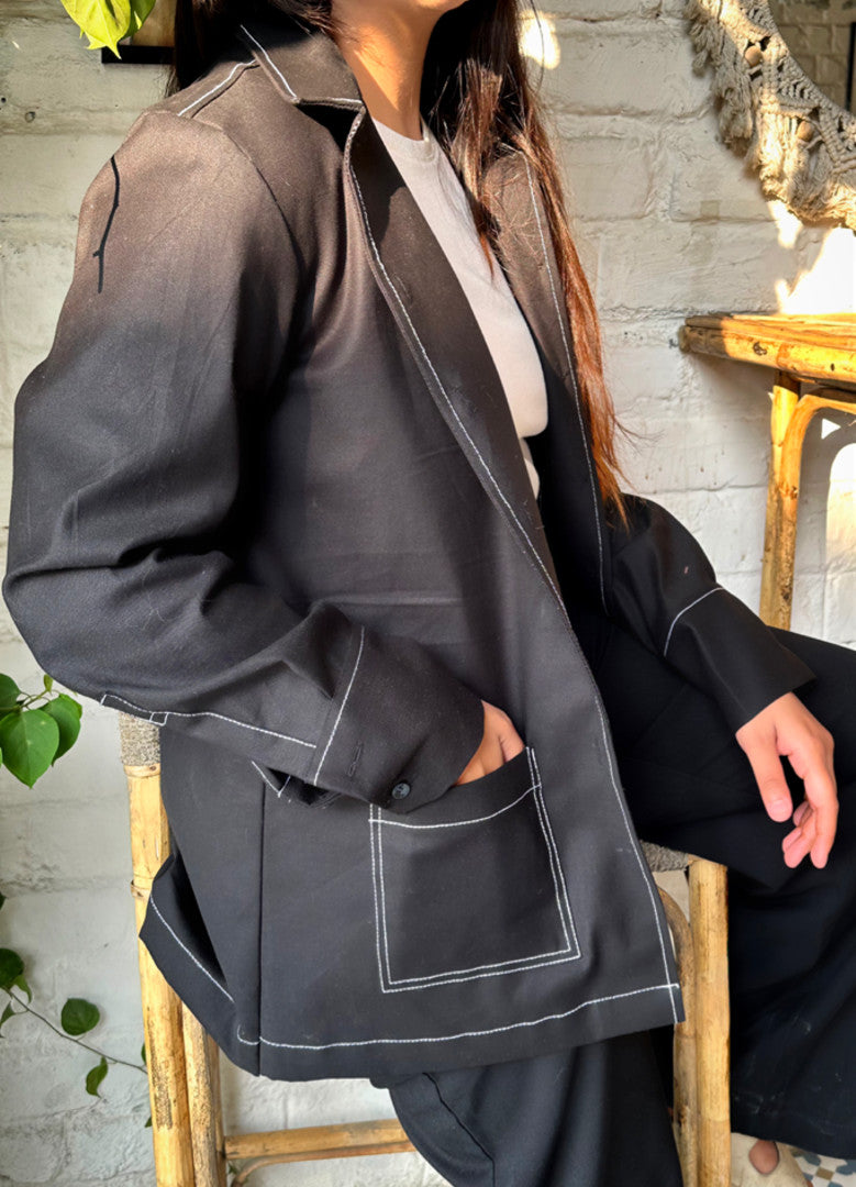 Elevate your wardrobe with this one-of-a-kind piece that blends creativity with modern fashion.