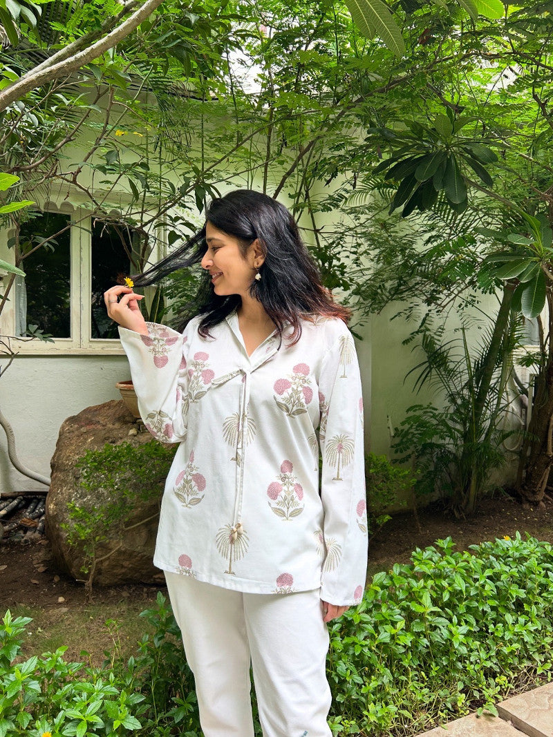 The Sera Tunic blends elegance with comfort, making it a must-have in your summer tops collection. Crafted from breathable cotton, it features delicate pink floral prints on a crisp white base. This airy tunic works beautifully as a short kurti for women when paired with slim pants or palazzos. Its relaxed fit makes it perfect for brunches, day trips or light layering by the beach.