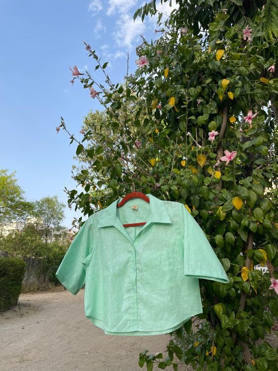 This shirt is light in weight, breathable and perfect for summer’s. Style it with hight waisted pants, jeans or straight fit jogger’s . ✨