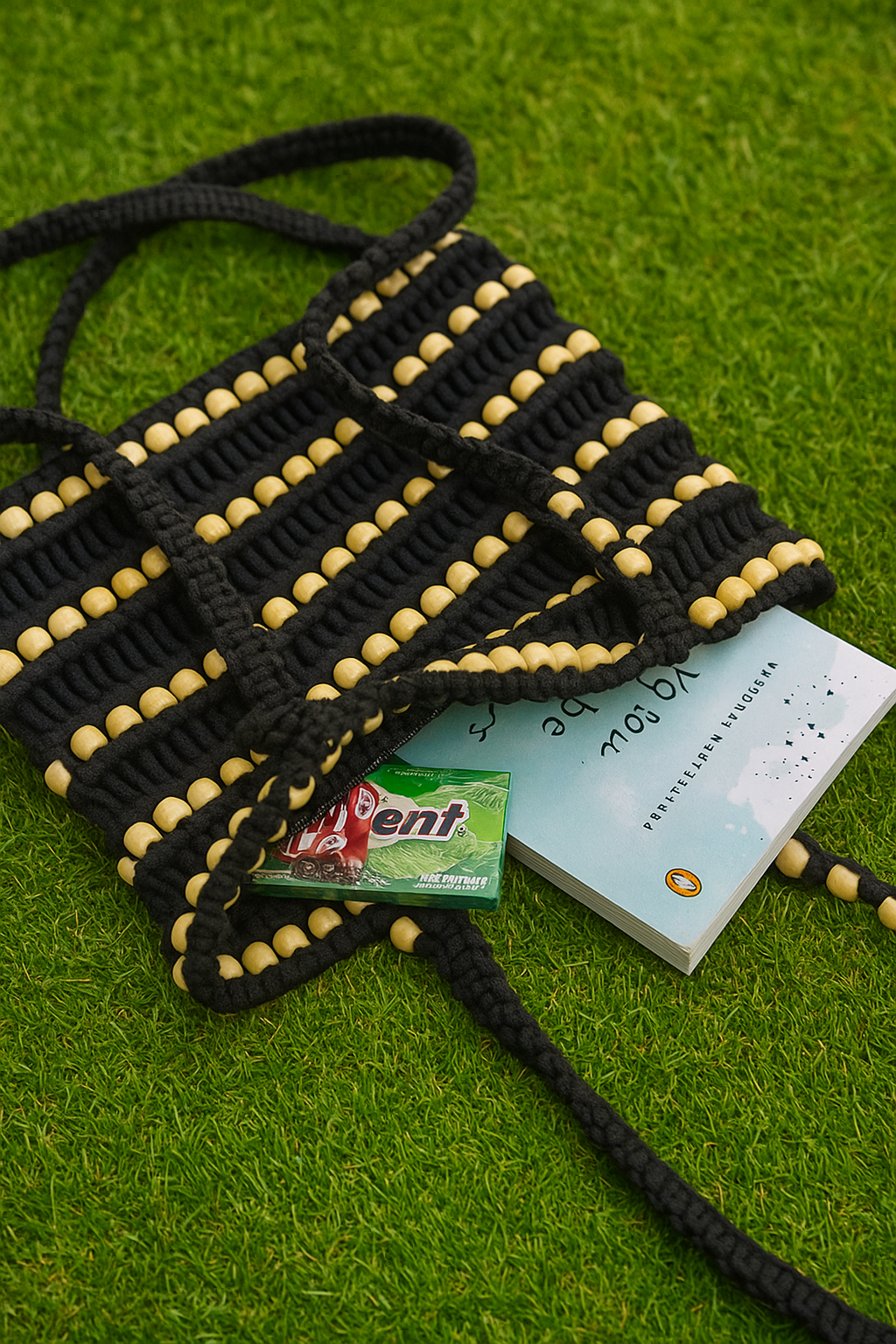 The Kate Tote Bag is where timeless charm meets modern functionality. Handcrafted with intricate black crochet and accented with natural wooden beads, this tote is designed to turn heads while carrying all your essentials with ease. Lightweight yet durable, it’s the perfect companion for brunches, beach strolls, or casual evenings out. With its effortless boho vibe and versatile size, the Kate Tote is more than just a bag — it’s a statement piece.